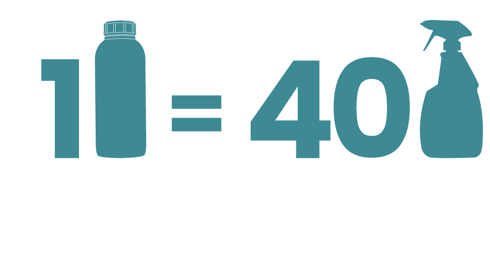- Menos embalagens descartáveis: os produtos concentrados permitem a reutilização de embalagens para fazer a diluição do produto final, evitando o consumo de descartáveis. 1L de inokem power evita pelo menos 40 embalagens descartáveis de 1L.