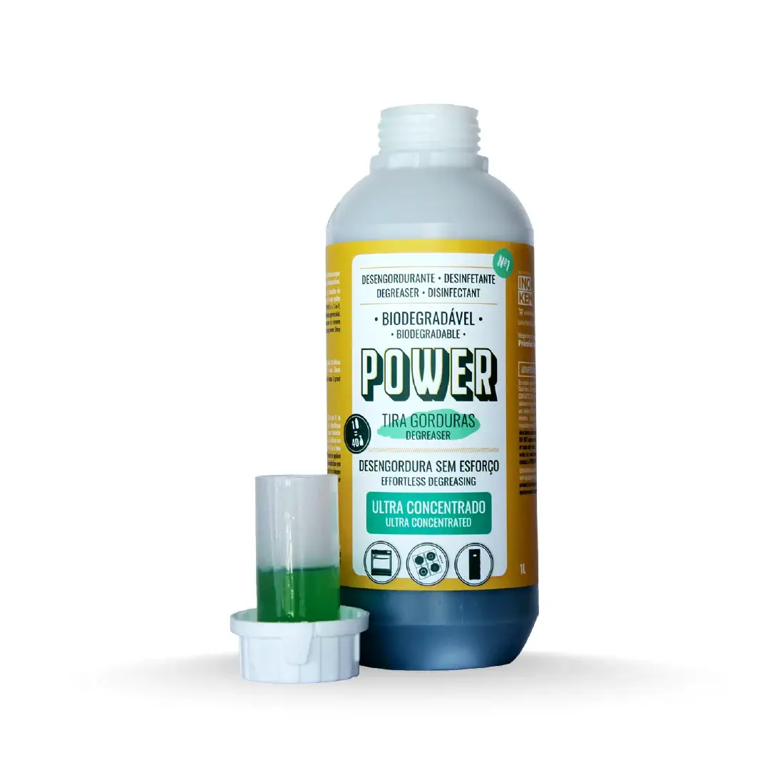 O Desengordurante Inokem Power é um produto hidrossolúvel, biodegradável e sem aroma. A sua fórmula não foi testada em animais.