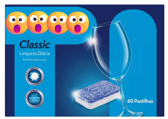 Detergente para a máquina da loiça em pastilhas marca “branca” de uma grande superfície: 0,06€ / dose (3,79€ / 60 pastilhas)