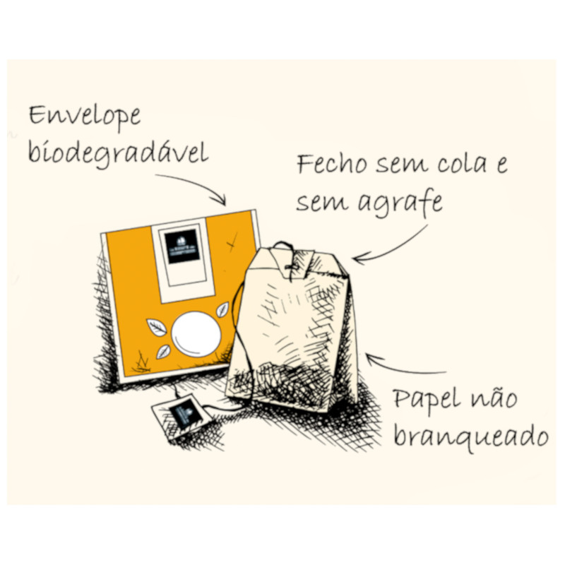 Embalagem: 20 saquetas biodegradáveis, sem agrafos.
