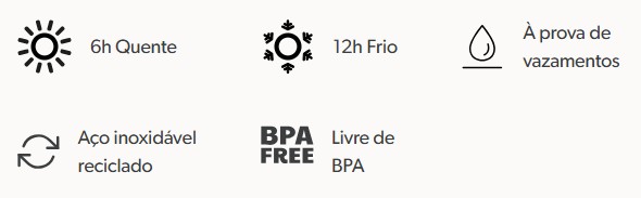 - Copo produzido com materiais seguros: paredes internas e externas em aço inox 304 (18/8) 90% reciclado. ♻️