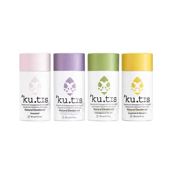 Desodorizante Natural Kutis Skincare sem bicarbonato de sódio, uma ótima alternativa aos desodorizantes convencionais. Feito à base de óleo de coco, manteiga de cacau e misturas de óleos essenciais que contêm propriedades antibacterianas e de combate a odores. Ideal para as peles mais sensíveis. Opção sem aroma disponível.