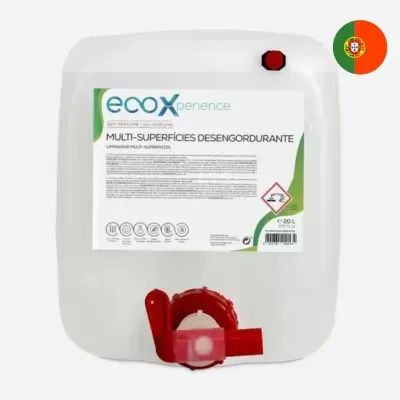 O detergente multisuperfícies desengordurante da ECOX é um detergente que limpa vários tipos de superfícies, remove todo o tipo de sujidades, desengordura e deixa um ambiente perfumado. É indicado para a limpeza de todo o tipo de superfícies de espaços domésticos como azulejos, balcões, bancadas, equipamentos, etc.