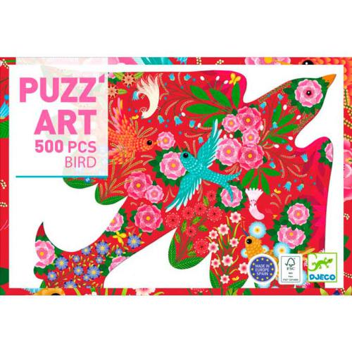 O Puzz'Art Bird é um puzzle de 500 peças. Com um novo formato, sem cantos ou bordas, o puzzle tradicional é reinventado. Dentro da silhueta do lindo pássaro em pleno voo, descobrimos pequenos pássaros que se divertem entre as flores.