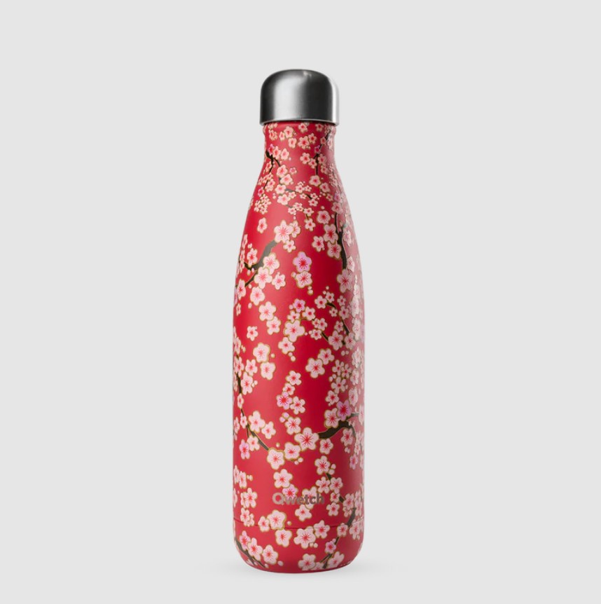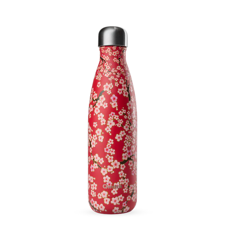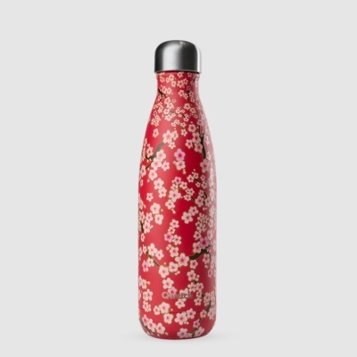 Garrafa térmica em inox de 500ml, rosa com elegante padrão floral inspirado na tradição japonesa. Mantém as tuas bebidas quentes até 12h e frias 24h. ⏳