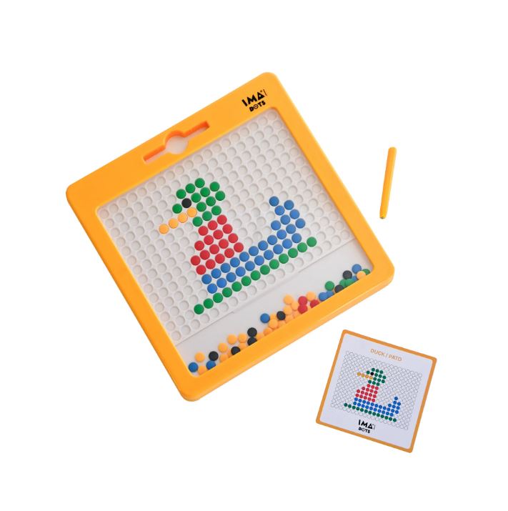 Imadots é ideal para trabalhares com precisão, concentração e diversão enquanto fazes uma viagem ou passeio. Fabricado com plástico ABS, não tóxico, sem BPA nem latex. Os ímanes estão selados dentro das peças seguindo os critérios de segurança mas adverte-se para o perigo associado ao mau uso que pode danificá-las.