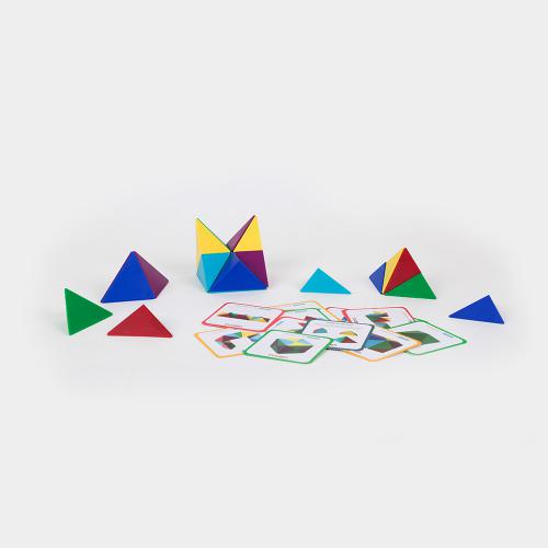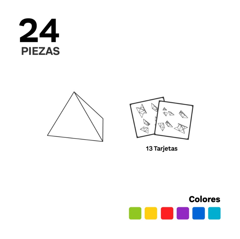 📦 Inclui 24 pirâmides triangulares e 12 cartões de desafios com 3 níveis de dificuldade diferentes.
