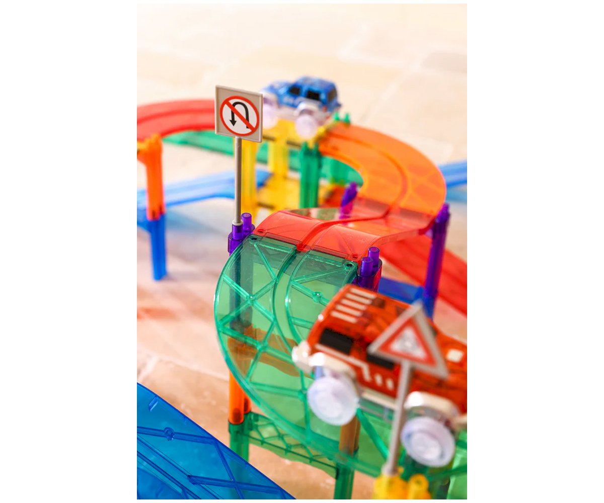 As peças translúcidas são perfeitas para brincar numa mesa de luz. 💡 IMANIX Speedway estimula a perseverança e permite trabalhar capacidades de resolução de problemas como planificação e análise. Além disso, desenvolve a coordenação mão-olho, a motricidade fina e a percepção espacial.