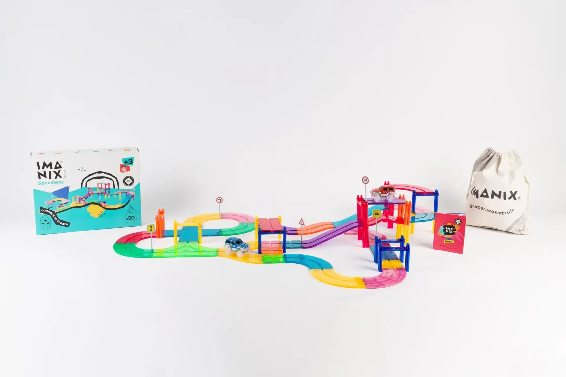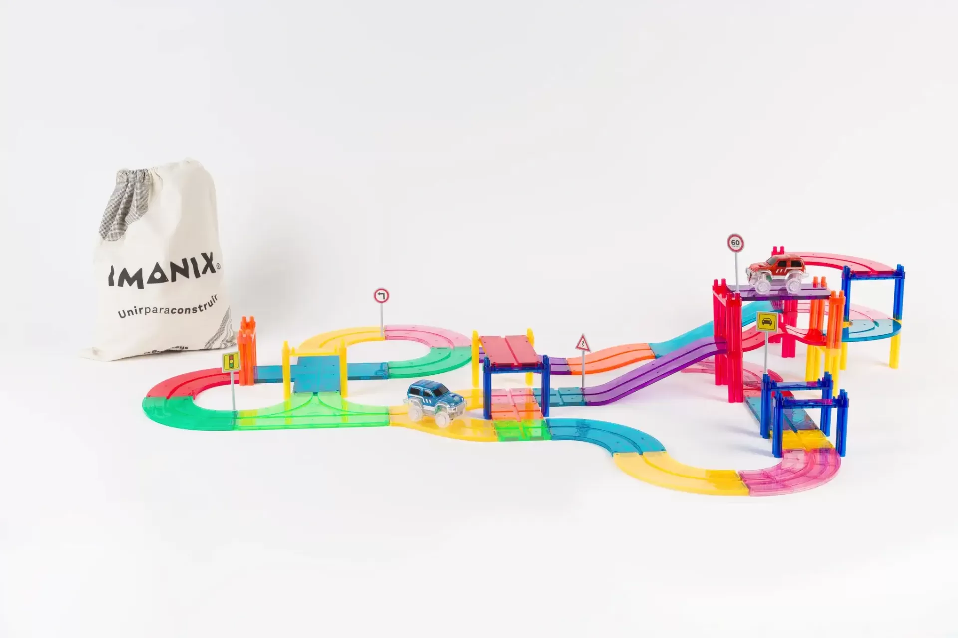 As peças translúcidas são perfeitas para brincar numa mesa de luz. 💡 IMANIX Speedway estimula a perseverança e permite trabalhar capacidades de resolução de problemas como planificação e análise. Além disso, desenvolve a coordenação mão-olho, a motricidade fina e a percepção espacial.