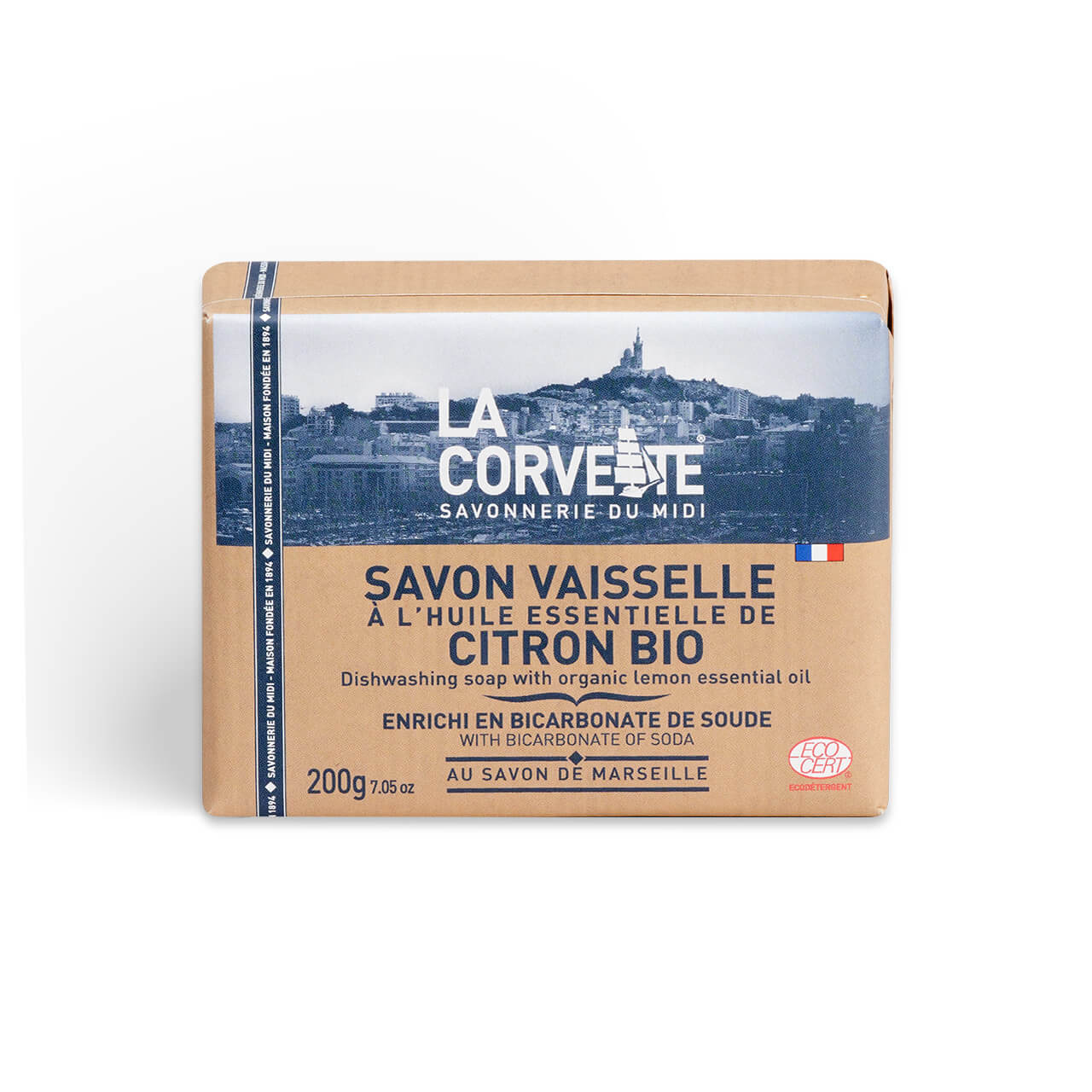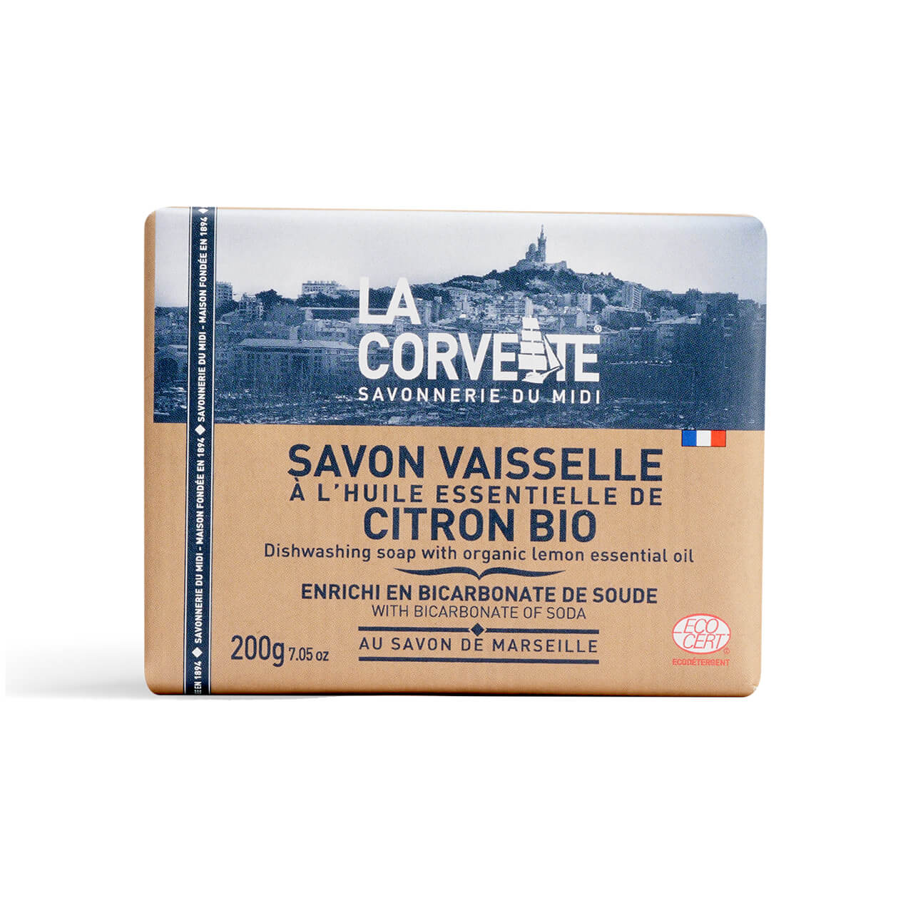 Formulado à base de sabão de Marselha e enriquecido com bicarbonato de sódio e óleo essencial de limão biológico. O sabão para louça La Corvette desengordura e abrilhanta a louça sem produtos nocivos para o homem e para o ambiente. 🌿