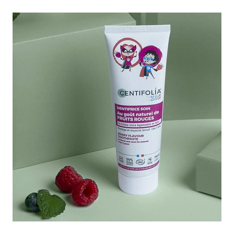 Dentífrico ideal para crianças a partir dos 3 anos. Sem flúor e com um delicioso aroma a frutos vermelhos.
