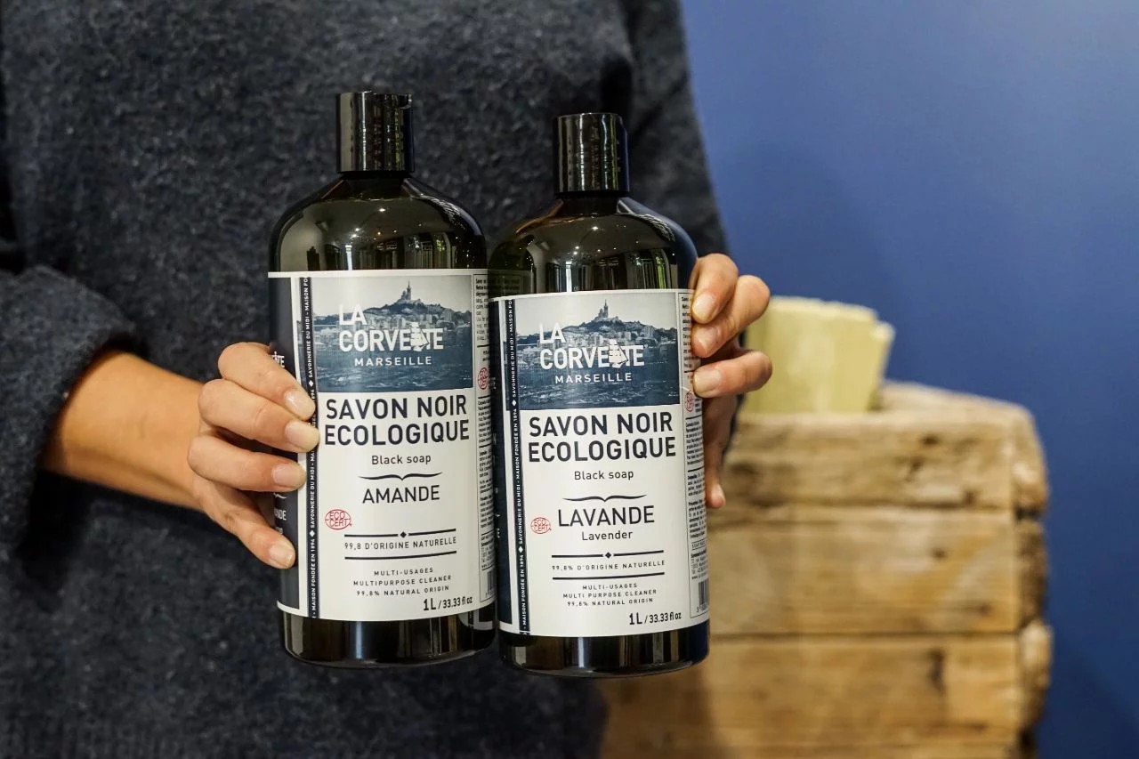 O sabão negro com óleo de linhaça, é um detergente ecológico tradicional. O sabão é feito à moda antiga, cozido em um caldeirão, a partir de óleo vegetal de bagaço de azeitona. É um excelente multiusos, desengordurante e tira-nódoas. Diluído, é ideal para uma nutrição profunda e proteção de todos os pisos modernos e antigos, nomeadamente azulejos, pisos de plástico, telha, terracota e cimento. O sabão negro puro pode ser usado como removedor de manchas de roupas, para lavar louça ou superfícies oleosas, como fornos e exaustores.