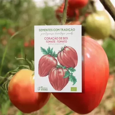Sementes de Tomate Coração de Boi - o tomate mais amado pelos portugueses – irregular, às vezes quase disforme, cativa pela doçura e delicadeza; maravilhoso em saladas e arroz malandrinho.