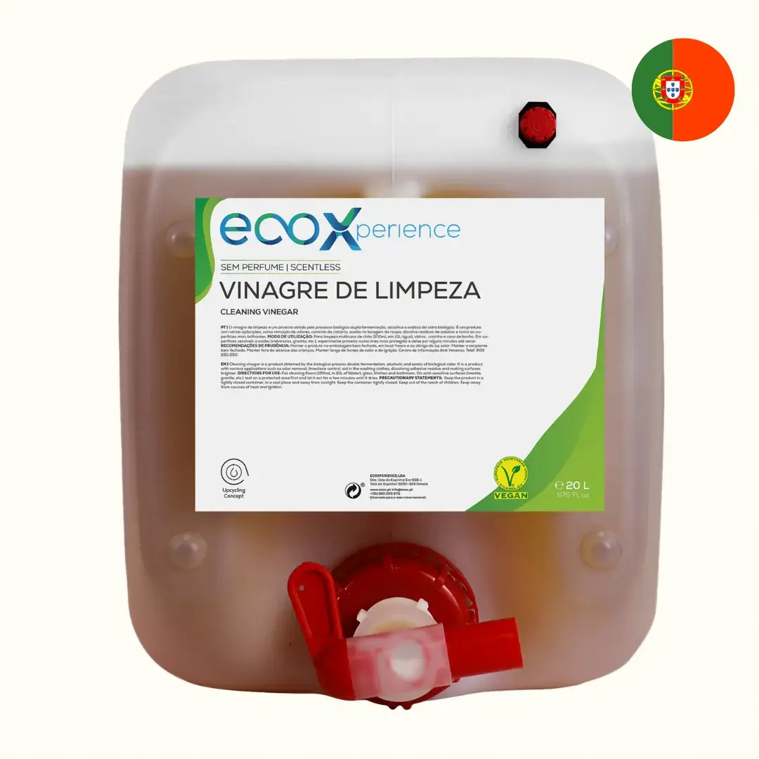 O Vinagre de Limpeza da ECOX é um produto obtido exclusivamente pelo processo biológico de dupla fermentação, alcoólica e acética de sidra biológica. É um produto com diversas aplicações como a remoção de odores, combate ao calcário, auxílio na lavagem de roupa, dissolver resíduos de adesivos e tornar as superfícies mais brilhantes. Produto natural com um cheiro característico.