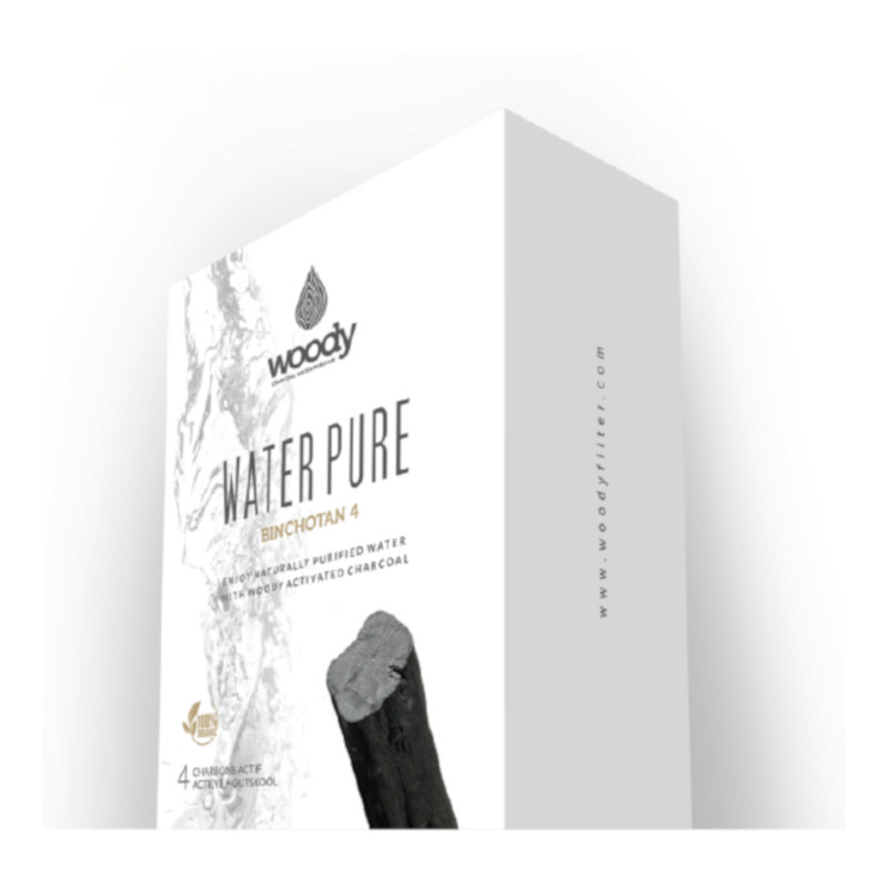 O Binchotan é constituído de 97% de carbono puro. Absorve as toxinas, chumbo, mercúrio, cádmio, cobre e cloro e liberta na água cálcio, potássio e magnésio.
